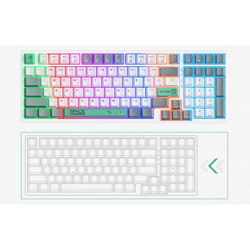 Az ONIKUMA G38 teljes funkciókészletet kínál 98 gombos kompakt elrendezésben, amely egy szabványos billentyűzet 80%-a. Ez az elrendezés minden szükséges funkciót biztosít, miközben helyet takarít meg az íróasztalon. Ez kiváló választás azoknak a játékosoknak, akik értékelik az ergonómiát és a hatékonyságot.