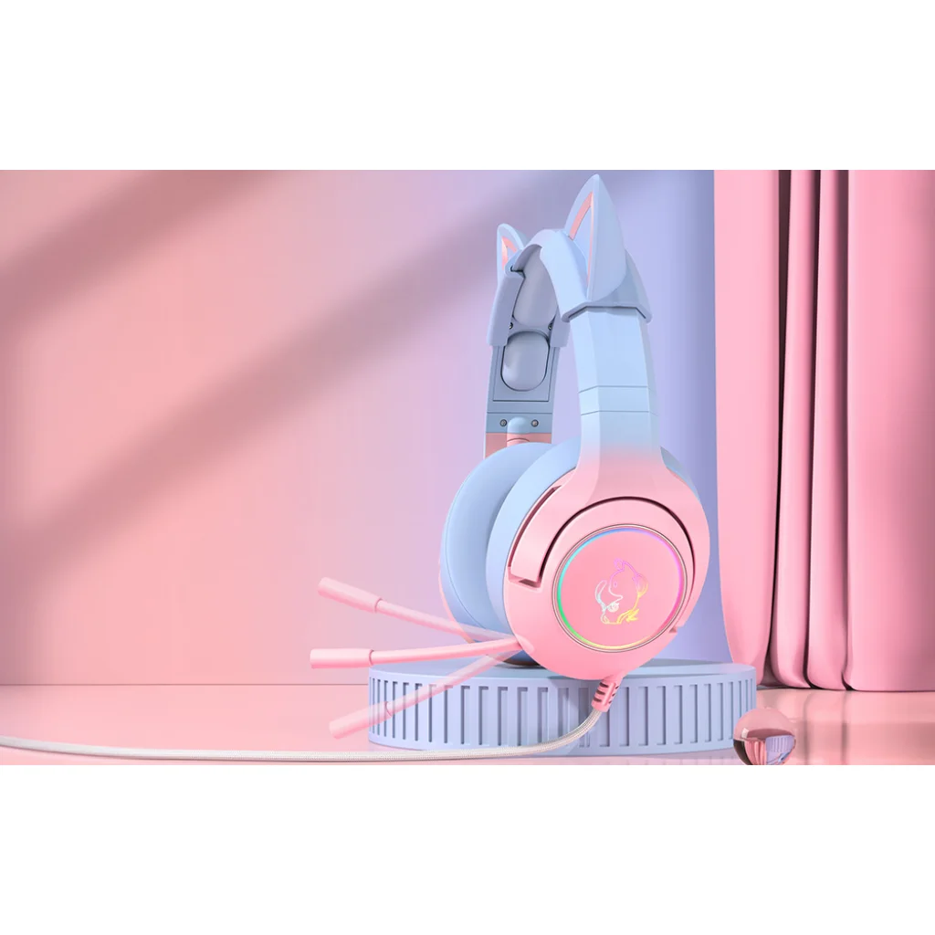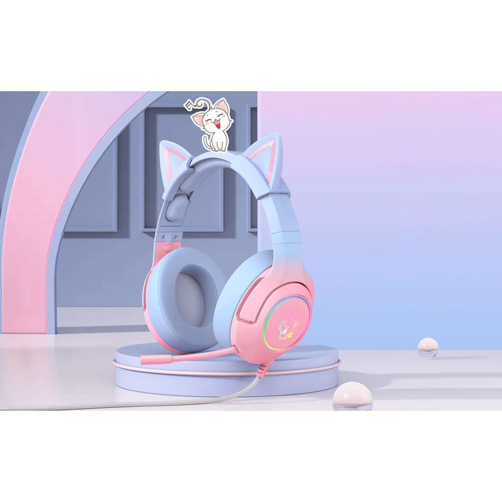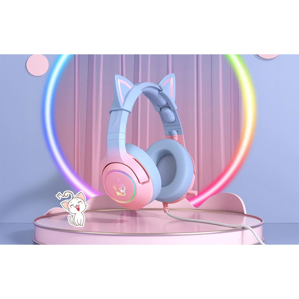 Az ONIKUMA K9 fejhallgató elbűvölő egyedi dizájnnal rendelkezik - a rózsaszín és kék szín, a macskafülek, a világító elemek és a mindkét fejhallgatón elhelyezett macskaszerűség gyengédséget, kislányosságot, egyediséget, valamint a szórakozás és az állatok iránti szeretetet fejezi ki! Mutasd meg a világnak elbűvölő személyiségedet még ma a stílusos dizájnnal és a lámpák színének megváltoztatásának lehetőségével!