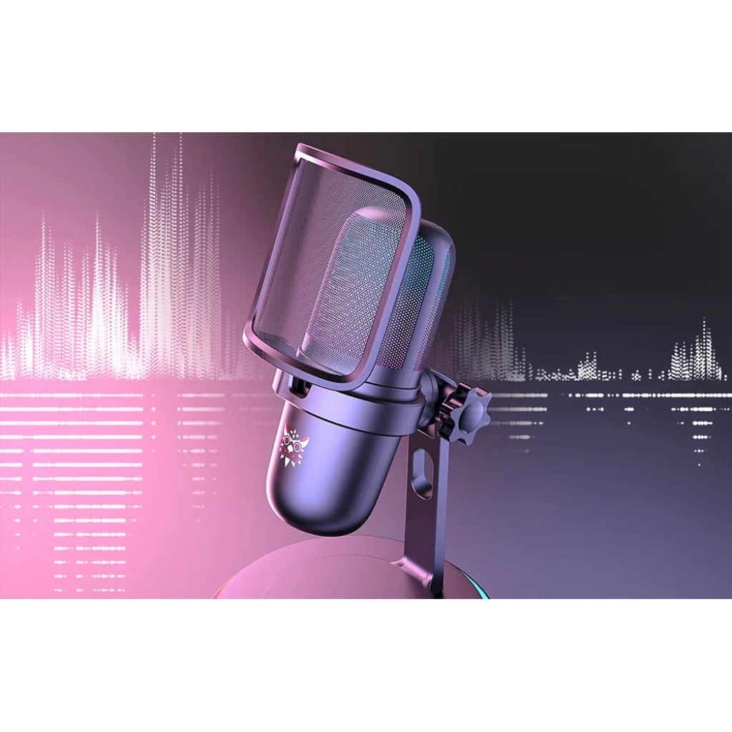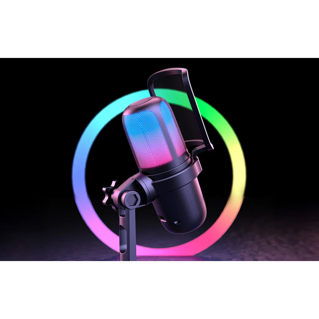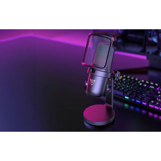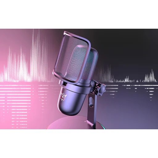 Az ONIKUMA M-730 egy olyan mikrofon, amelyet streamelők, webfejlesztők, játékosok és énekesek számára terveztek. Egyesíti a színes RGB háttérvilágítást, a jó hangfelvételi minőséget és a kényelmes használatot az egyszerű vezérléssel és a plug & play kialakítással.