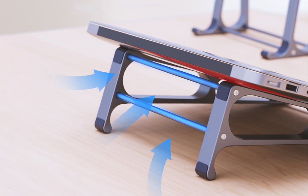 Az állvány kialakítása 30°-os szögben hajlított, a látóvonal magassága pedig 87 cm, amely páratlan kényelmet nyújt használata során. A speciálisan tervezett kiegészítő hatékony hőelvezetést biztosít, miközben megvédi laptopját a túlmelegedéstől.