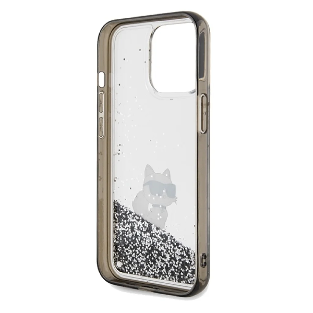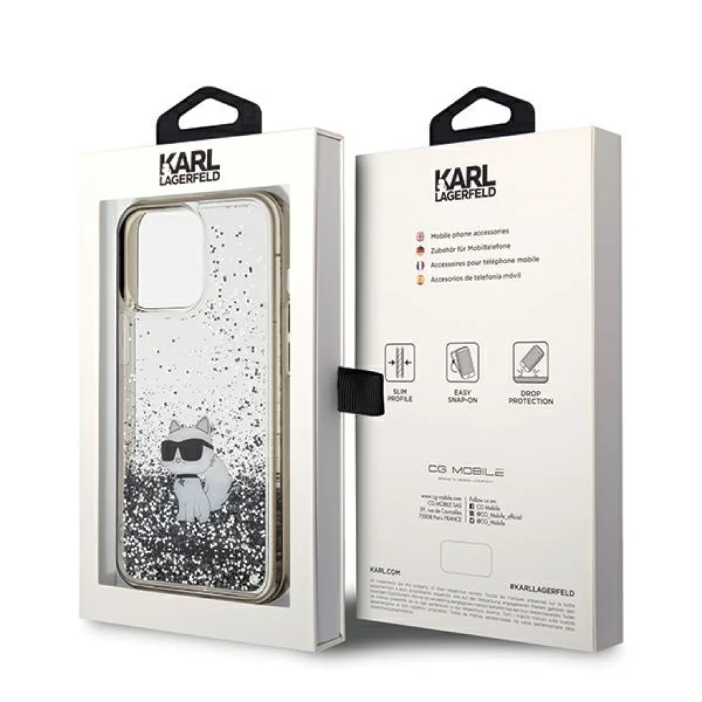 Original Pouch KARL LAGERFELD keménytok Liquid Glitter Choupette KLHCP13XLKCNSK for Iphone 13 Pro Max Átlátszó tok