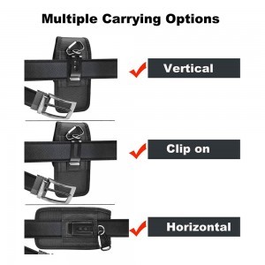 - Rögzítési módok: Függőleges övbújtató, vízszintes övbújtató, fém övcsipesz, karabiner