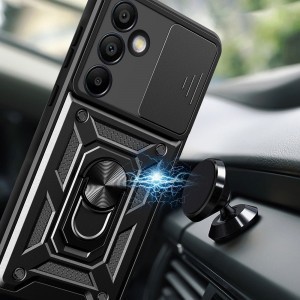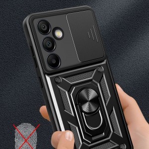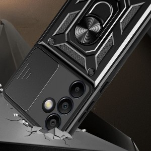 Fedezd fel a Páncélos hibrid páncél kameravédő tokot – tökéletes megoldás mindenkinek, aki meg szeretné védeni a Samsung Galaxy S24 FE készülékét bármilyen helyzetben. Ez a tok kiváló védelmet nyújt a sérülésekkel és karcolódásokkal szemben a megerősített szerkezetének köszönhetően. Az integrált kameravédő garantálja az objektívek biztonságát, megvédve őket a szennyeződésektől és repedésektől. A fém gyűrű nemcsak kényelmes ujjfogásként szolgál, hanem praktikus állványként is, amely lehetővé teszi a kényelmes filmnézést vagy szövegolvasást a képernyőn. A tökéletesen illeszkedő kivágások teljes hozzáférést biztosítanak a telefon összes funkciójához.