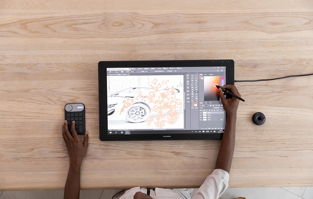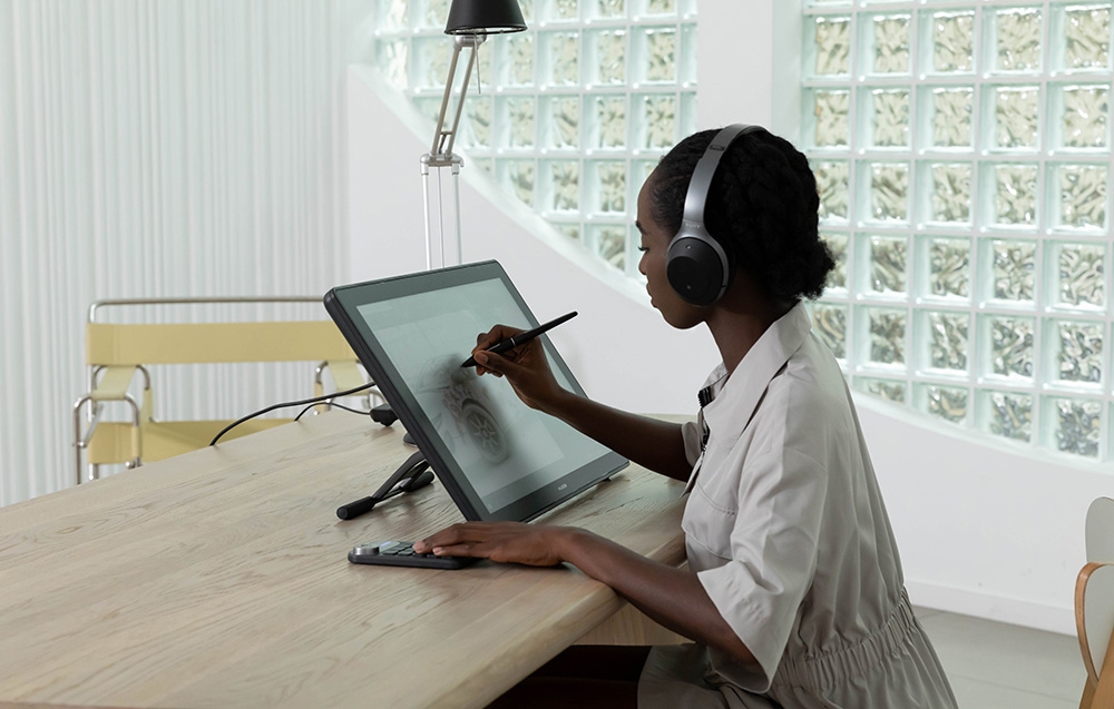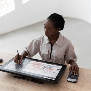 A táblagéphez állítható állvány tartozik, amely lehetővé teszi a képernyő 20° és 80° közötti dőlésszögének beállítását. Ez lehetővé teszi, hogy a hosszú munkaórákhoz a tökéletes pozíciót választhassa, anélkül, hogy megerőltetné a nyakát vagy a csuklóját. Ha pedig növelni szeretné a termelékenységét - a táblagép együttműködik az opcionális KD100 mini vezérlővel, amely külön megvásárolható.