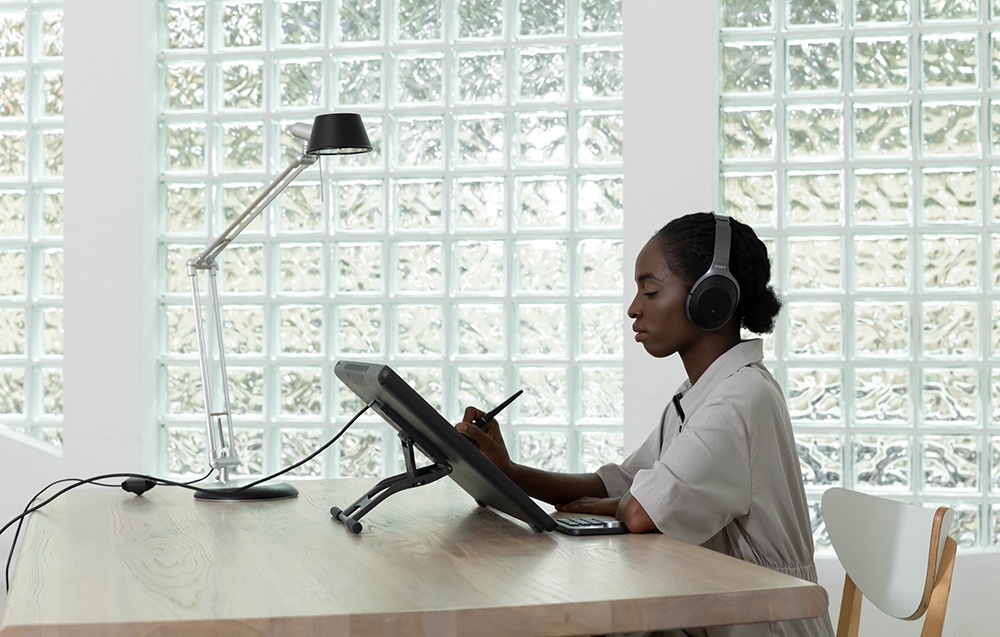 A Kamvas 24 Plus képernyő 178°-os betekintési szöget kínál, így a szín- és fényerőviszonyok helyzettől függetlenül egységesek maradnak - ideális, ha csapatban dolgozik, vagy szereti átállítani a monitorát.