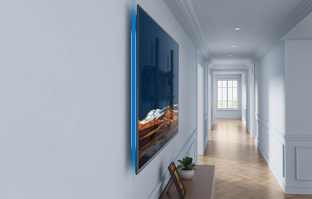A termék szuperkarcsú kialakítása lehetővé teszi, hogy a TV-t közel a falhoz rögzítse - mindössze körülbelül 3 cm távolsággal. Az ilyen alacsony profil miatt a készülék modern és elegáns megjelenésű, és a környező tér mentes marad a felesleges elemekkel.