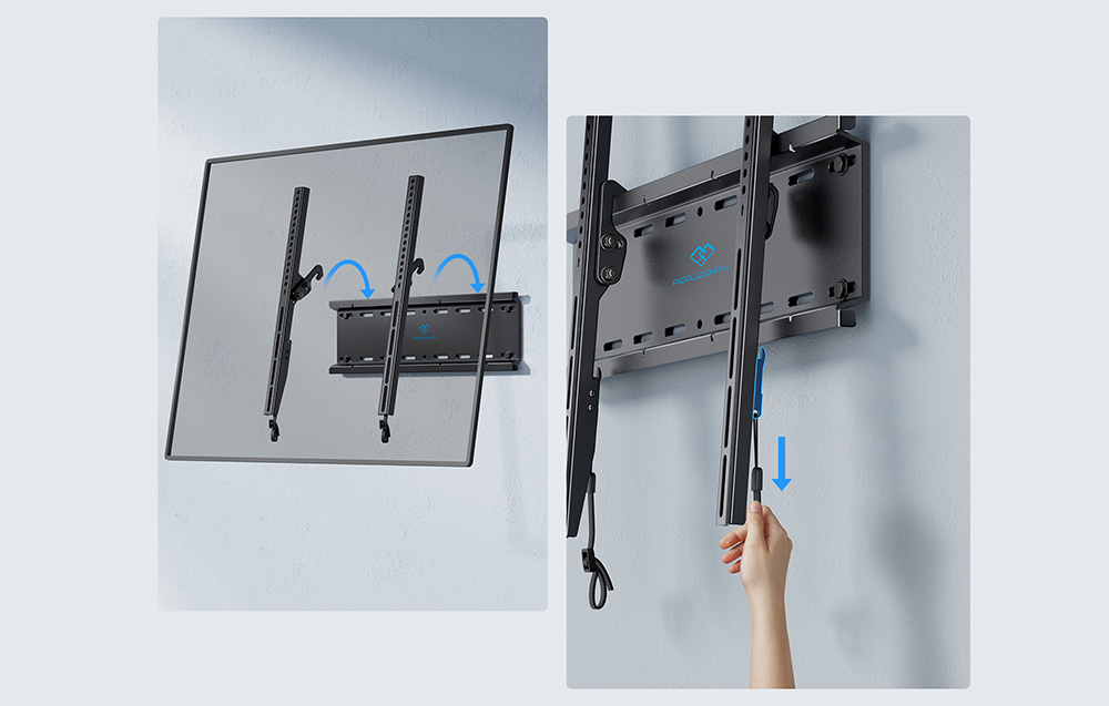 A tartó felszerelése fa tartókra, betonra vagy téglára rendkívül egyszerű és gyors - mindössze 12 percet vesz igénybe, hogy a TV-t a falra helyezze. Kábeles zármechanizmusa biztosítja, hogy a készülék szilárdan rögzítve legyen. Megjegyzés: nem ajánlott a tartót közvetlenül gipszkartonra szerelni, mert ez a készülék károsodásának kockázatát jelentheti.