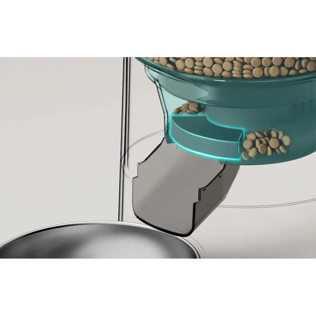 A tartály reteszelő mechanizmusa megvédi a tartalmat a véletlen kiömléstől. Még ha a készüléket felborítják is, az élelmiszer bent marad. Ez a praktikus megoldás segít rendben tartani az etetési helyet.