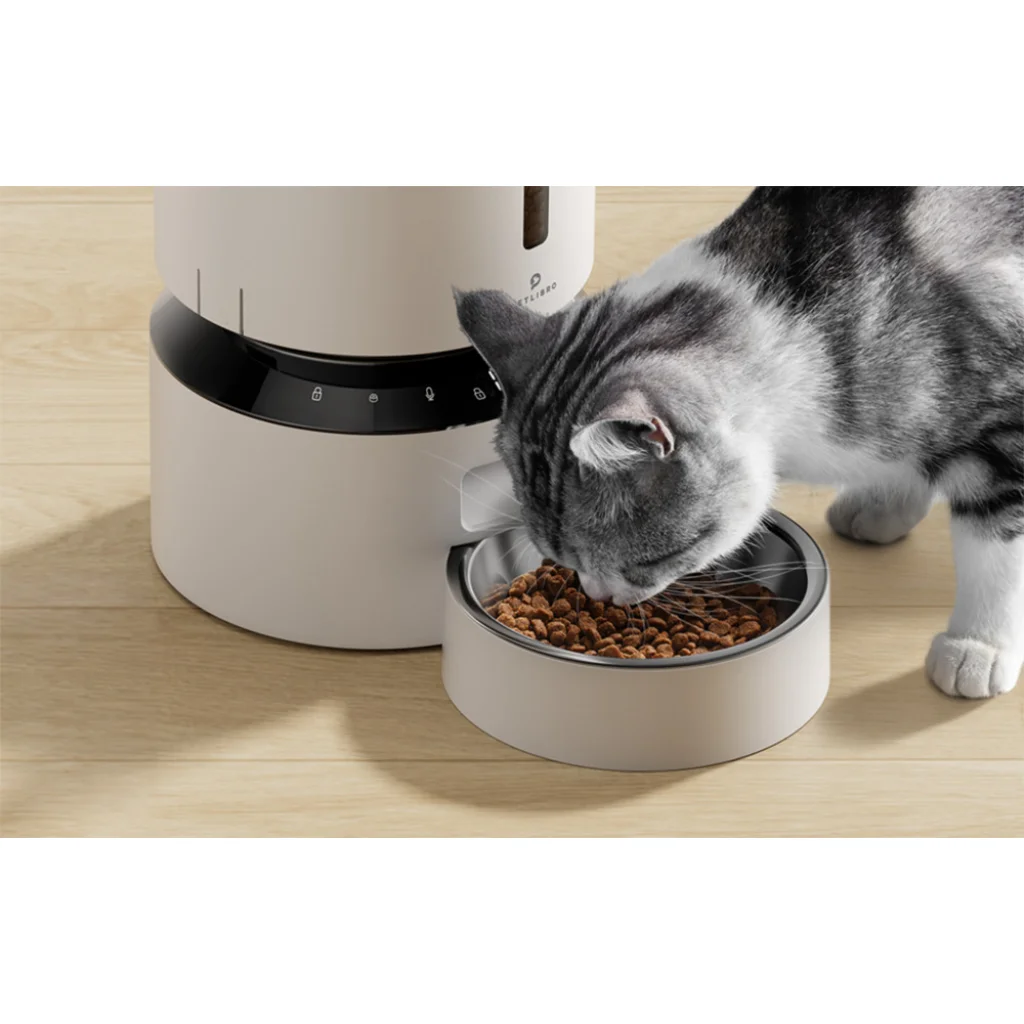 Az eledellel érintkező alkatrészek BPA-mentes anyagból készültek a biztonságos használat érdekében. A fedél, a tartály, az alap és a tál könnyen eltávolítható, ami megkönnyíti a tisztítást. Az infravörös érzékelő automatikusan leállítja az adagolást, ha elakadást észlel, így segít megelőzni a dugulást és az eledel kiszóródását.