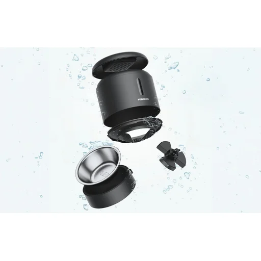 Az eledellel érintkező alkatrészek BPA-mentes anyagokból készültek, így biztonságos használatot nyújtanak. A fedél, a tartály, az alap és a tál könnyen eltávolítható, ami gyors és alapos tisztítást tesz lehetővé. Az infravörös érzékelő automatikusan leállítja az adagolást, ha a kimenet eldugul, ezzel segít megelőzni az elakadást és az eledel kiszóródását.