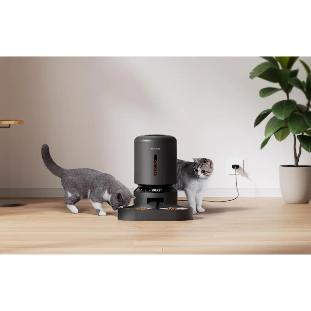 A PETLIBRO Granary 5 literes automata kisállatetető egy fejlett készülék, amely az adagok pontos kiadását az eledel frissességének megőrzésével ötvözi. Ez a modell napi legfeljebb 6 étkezés beállítását teszi lehetővé, valamint az adagméret szabályozását is támogatja legfeljebb 50 adagig, ahol 1 adag 20 ml. Az eledel két rozsdamentes acél tál között egyenletesen vagy egyedileg is elosztható. A készülék 2–15 mm átmérőjű szárazeledelhez használható, beleértve a hagyományos, fagyasztva szárított és levegőn szárított eledeleket is. A négyszeres tömítőrendszer hatékonyan védi az eledelt a nedvességtől és a frissesség elvesztésétől, az elakadásgátló mechanizmusok pedig biztosítják a zavartalan működést. Az etető működtethető hálózati áramról (DC 5 V), illetve 3 db D méretű elemmel is, amelyek nem tartozékok.