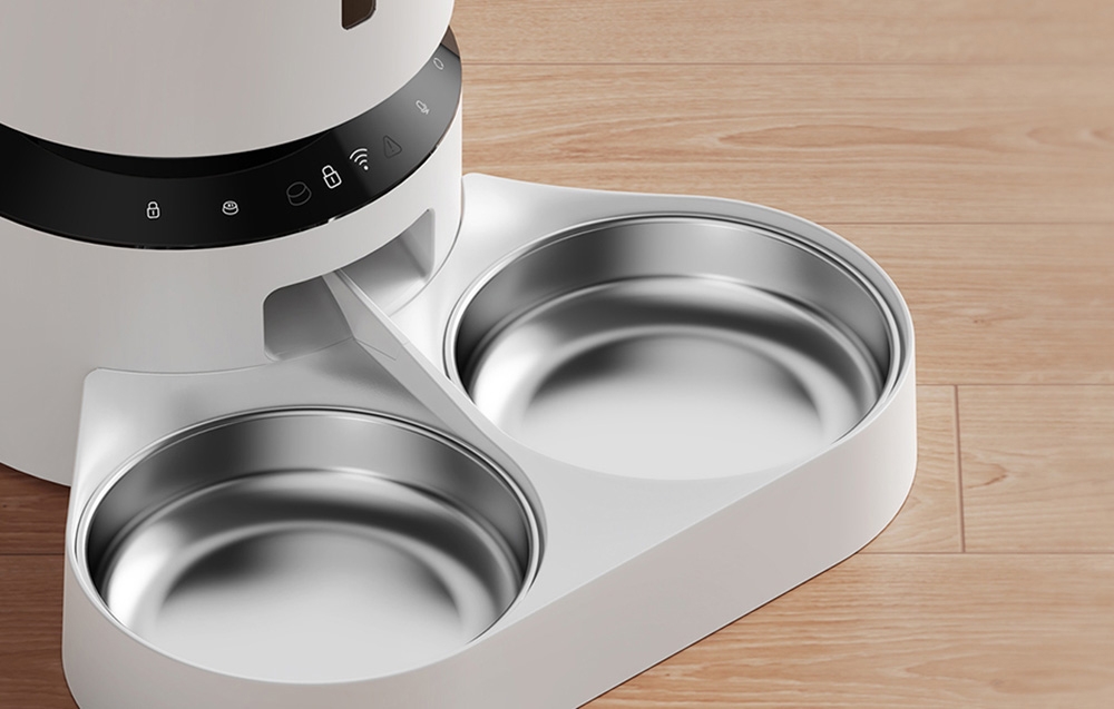 Kedvence biztonsága és kényelme elsődleges fontosságú. A 304 rozsdamentes acélból készült tál megakadályozza a zsírlerakódást és az állpattanásokat, a szivárgásmentes kialakítás szilikon tömítéssel, forgózáras fedéllel és nedvességelnyelővel pedig frissen tartja az ételt. Az átgondolt tervezés megkönnyíti a tisztítást és garantálja a biztonságot - a tál és az adagolóelemek könnyen eltávolíthatók, a nejlon kábel ellenáll a rágásnak, a szilikonbetétek pedig stabilizálják a készüléket. A készülék 2-15 mm-es méretű száraz ételeket kezel, így sokoldalú és megbízható.