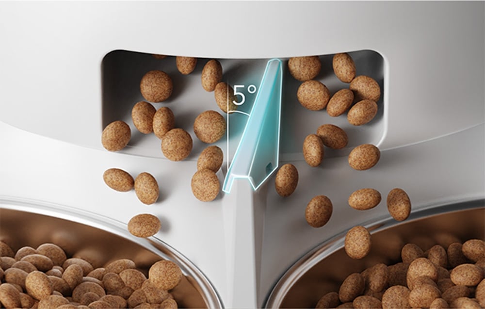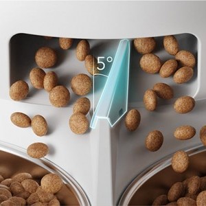 Az egyedülálló, állítható ételosztó gondoskodik az egyenlő adagokról, akár egy, akár két háziállatról van szó. A jobb szélső beállítás biztosítja az egyenletes adagolást mindkét tálba, míg a középső beállítás lehetővé teszi, hogy az egyik tálba több ételt juttasson. A mechanizmus hatékonyan és pontosan működik, így kiküszöböli az egyenlőtlen elosztás kockázatát.