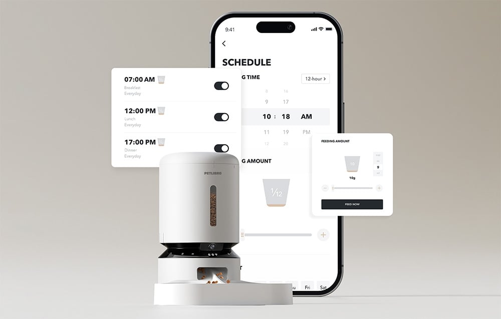 Az adagoló támogatja a 2,4 GHz-es (szélesebb hatótávolság) és az 5 GHz-es (gyorsabb átvitel) sávokat is, ami stabil kapcsolatot garantál a Petlibro alkalmazással. Mozgás- és hangjelzéseket kaphat, beállíthatja a riasztások érzékenységét, és három kameranézési tartomány közül választhat. A videót helyileg MicroSD-kártyára vagy felhőbe mentheti - amelyik Önnek kényelmesebb!