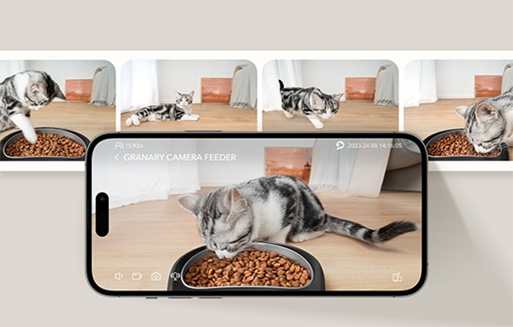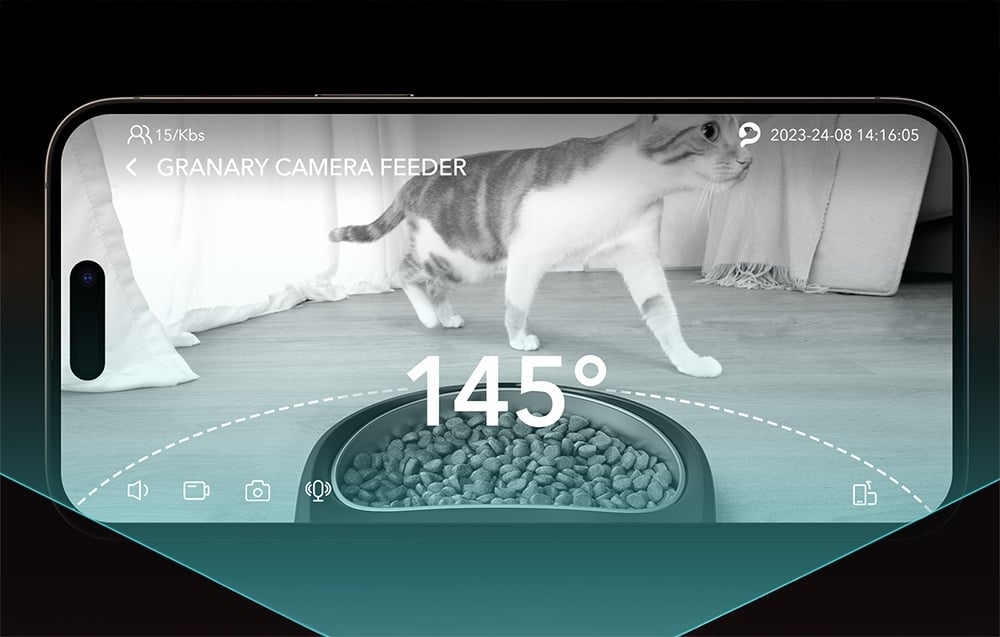 A Petlibro Granary gondoskodik kedvence rendszeres etetéséről, és lehetővé teszi, hogy bárhol is legyen, mindig kapcsolatban maradjon kedvencével. A 145°-os látószögű, 1080p HD kamerával és infravörös éjjellátó funkcióval felszerelt készülék lehetővé teszi, hogy éjjel-nappal, akár sötétben is megfigyelhesse macskáját vagy kutyáját. Az egyedülálló, lefelé néző kameraállásnak köszönhetően biztosan láthatja pontosan azt, ami a legfontosabb - kedvencét - anélkül, hogy otthona teljes belső terét megmutatná.