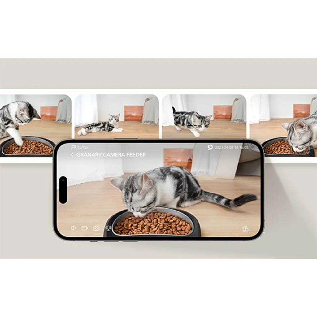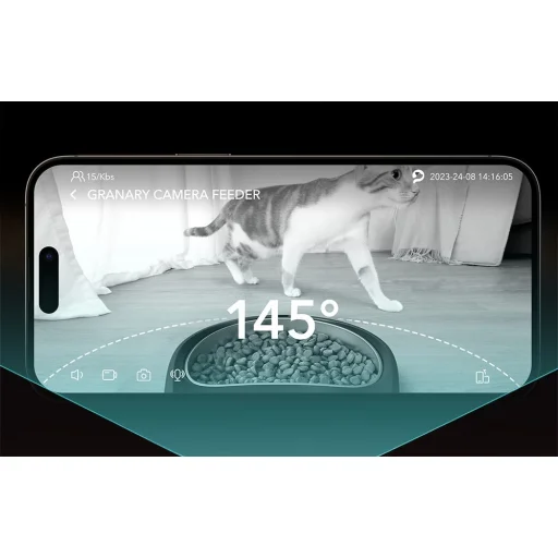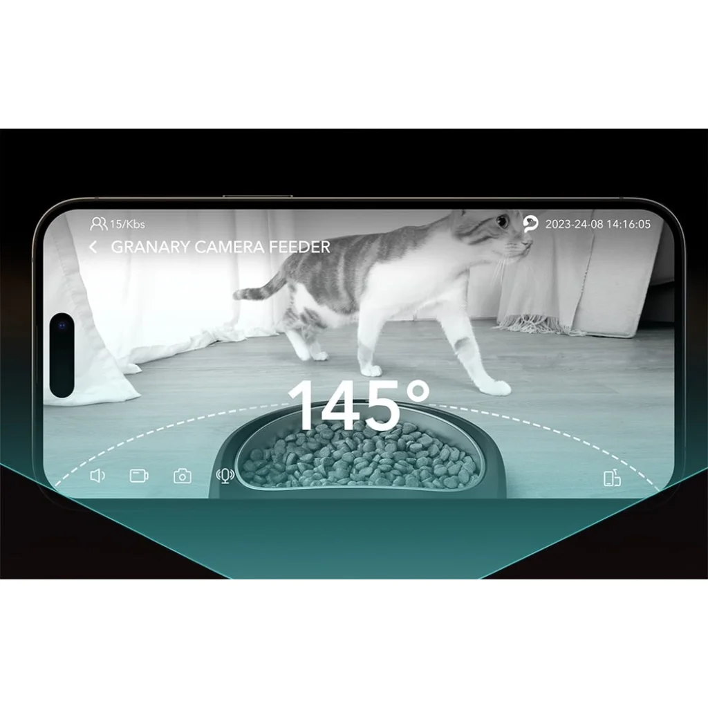 A Petlibro Granary gondoskodik kedvence rendszeres etetéséről, és lehetővé teszi, hogy bárhol is legyen, mindig kapcsolatban maradjon kedvencével. A 145°-os látószögű, 1080p HD kamerával és infravörös éjjellátó funkcióval felszerelt készülék lehetővé teszi, hogy éjjel-nappal, akár sötétben is megfigyelhesse macskáját vagy kutyáját. Az egyedülálló, lefelé néző kameraállásnak köszönhetően biztosan láthatja pontosan azt, ami a legfontosabb - kedvencét - anélkül, hogy otthona teljes belső terét megmutatná.