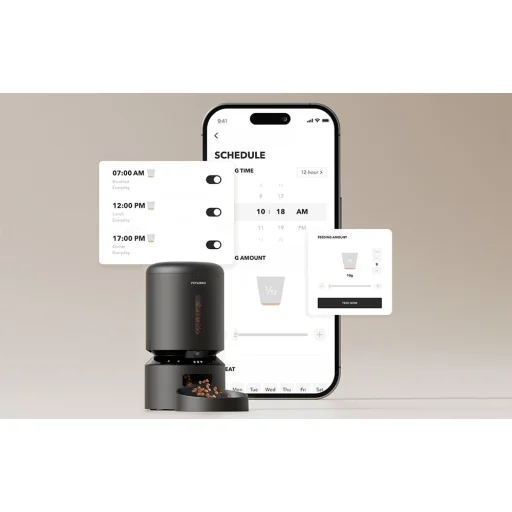 Kezelje okostelefonjáról kedvence etetési ütemtervét. A Petlibro dedikált alkalmazásával (amely támogatja a 2,4 és 5 GHz-es Wi-Fi-t) beállíthatja az adagok számát, az étkezési időpontokat és az adagok méretét kedvence étrendjének és igényeinek megfelelően. Tökéletes azoknak a gazdiknak, akik szeretnének gondoskodni kedvencük egészséges táplálkozási szokásairól, és nem aggódnak amiatt, hogy időben megetették-e őket. Akár a munkahelyén, akár nyaraláson vagy üzleti úton van, néhány kattintással mindent kézben tarthat.