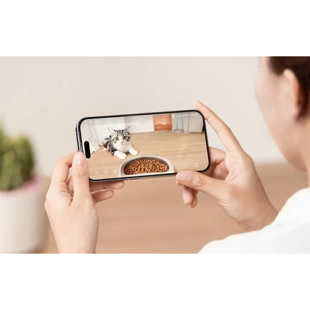 A Petlibro Granary lehetővé teszi, hogy ne csak megfigyelje, hanem kommunikáljon is kedvencével. A kétirányú audiorendszernek köszönhetően távolról is beszélhet kedvencéhez, hallhatja reakcióját, és biztonságban érezheti magát, még akkor is, ha nem tartózkodik otthon. Beállíthat egy 10 másodperces hangfelvételt is, amely minden étkezéskor lejátszásra kerül. Így kedvence gyorsan megtanulja felismerni az etetési jelzést, és lelkesen közelít a tálhoz.