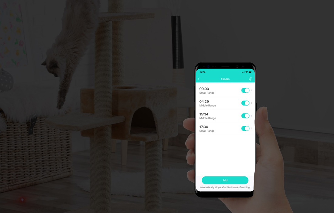 Pair the Smart Dot with an app for even more options. This allows you to set individual play schedules for your cats, for example. Set the hours you want the device to run, as well as specific modes of operation. Surprise your pets and let them enjoy great entertainment, even when you are away from home.