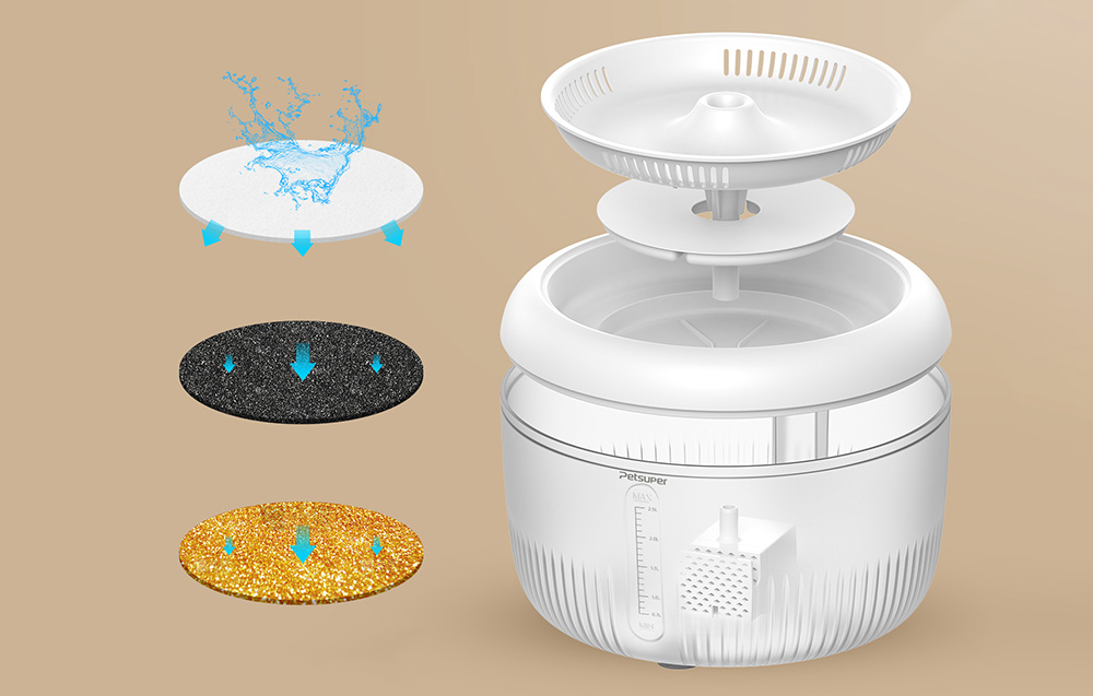 A Petsuper PW02 okos ivókút egy korszerű, 2,5 literes készülék, melyet kedvence egészségére és kényelmére terveztek. Fejlett szűrési technológiával és funkcionális megoldásokkal állandó hozzáférést biztosít a friss és tiszta vízhez, ösztönözve a kisállatokat a rendszeres ivásra. Emellett rendkívül csendesen működik, így nem zavarja meg az Ön nyugalmát.