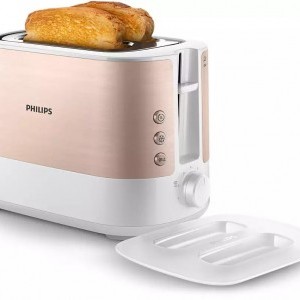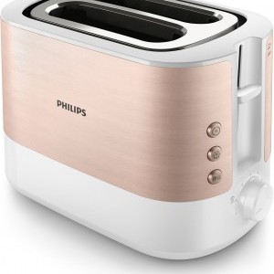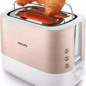 A PHILIPS Viva Collection HD2638/11 kenyérpirító elegáns fehér és rose gold/réz színkombinációjával azonnal magára vonzza a tekintetet, modern és kifinomult megjelenést kölcsönözve bármely konyhának. A stílusos külső mellett a 950W-os teljesítmény garantálja a gyors és hatékony pirítást minden reggel.