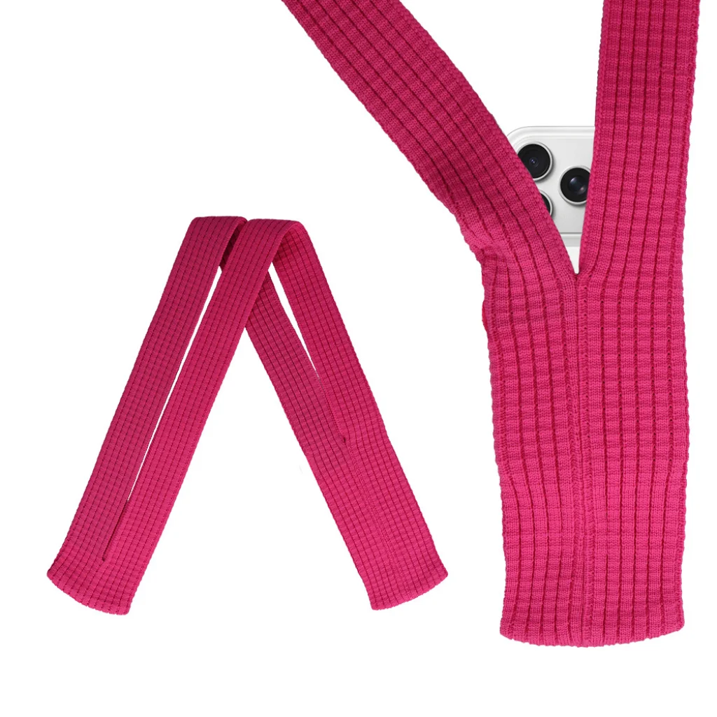 Pocket Strap – rugalmas nyakba akasztható telefontok Egy minimalista, elasztikus telefontok, amely hosszú pánttal egy vékony zsebként lett kialakítva. Háromrétegű szövési technológiával készült, így szépen alkalmazkodik a készülékhez és kényelmes viseletet biztosít. Praktikus mindennapi megoldás—a telefon mindig kéznél van anélkül, hogy zsebekben vagy táskában kellene keresgélni. Főbb jellemzők -Rugalmas illeszkedésű kialakítás – az elasztikus anyag alkalmazkodik a telefonhoz és biztonságosan tartja a helyén. -Háromrétegű szövési technológia – javított tartósság, rugalmasság és finomabb texturált érzet. -Kényelmes viselet – a hosszú pánt közel tartja a telefont utazás, vásárlás vagy napi tevékenységek során. -Vékony zseb kialakítás – csökkenti a terjedelmet, miközben gyors hozzáférést biztosít a készülékhez. Műszaki adatok -Méretek: 80 cm × 8,5 cm -Maximális telefon szélesség: legfeljebb 83 mm -Anyaga: Nylon (14%), Poliészter szál (85%), Poliuretán (1%) -Gyártási módszer: háromrétegű szövés