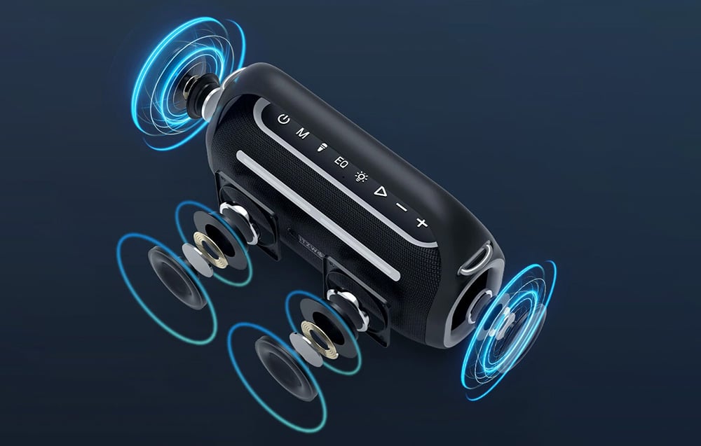 A BlitzWolf BW-WA7 2 darab 78 mm-es meghajtó és kettős membrán használata tiszta magas hangokat és mély, erőteljes basszusokat biztosít. Ezeknek a fejlett hangkomponenseknek köszönhetően a hangszóró hangerőtől függetlenül torzításmentességet és teljes hangtisztaságot garantál.