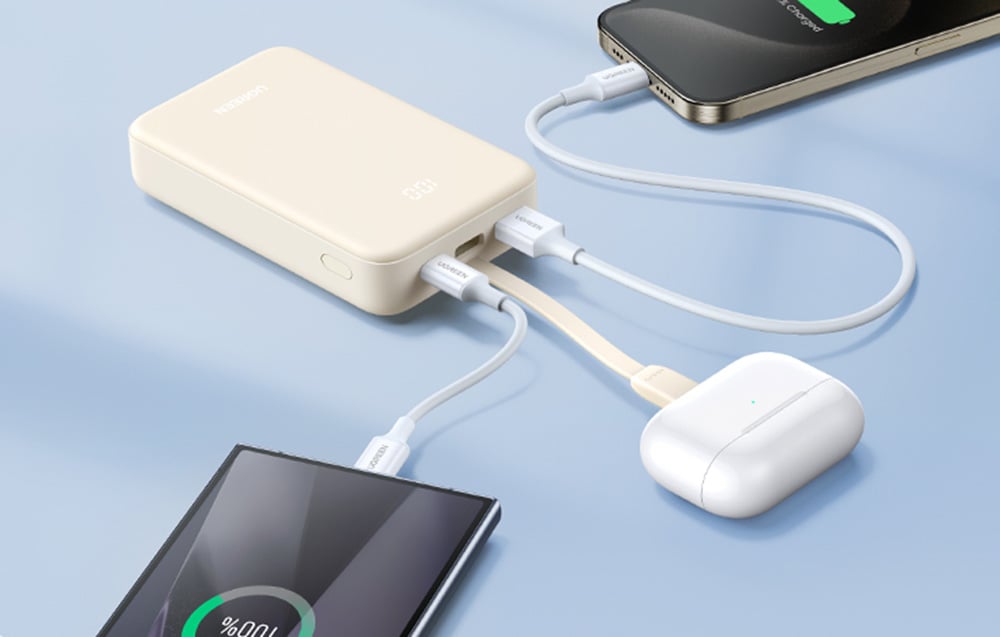 Fehér színével és elegáns kialakításával az Ugreen Nexode PB505 powerbank nemcsak stílusos, hanem praktikus is a mindennapi használat során. Kompakt méretének köszönhetően könnyen hordozható, könnyű kialakítása pedig kényelmes szállítást biztosít. Ezenkívül bármilyen belsőtérbe illeszkedik, és minden napi öltözethez passzol. Élvezze az eszközei határtalan erejét és biztonságát bárhol is van.
