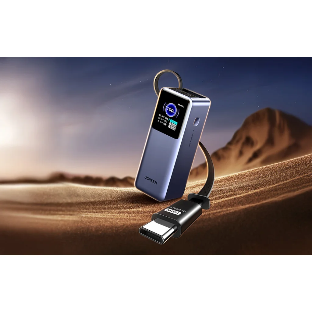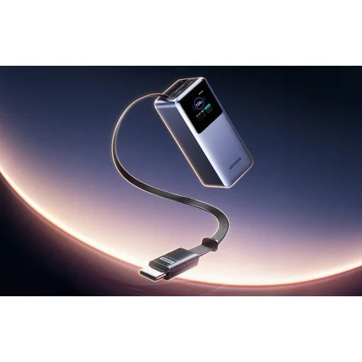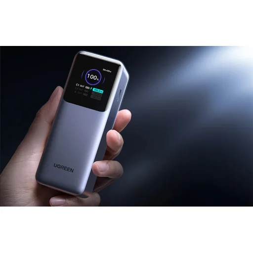 Az UGREEN Power Bank 20000 mAh egy kompakt, mégis rendkívül nagy teljesítményű eszköz, amely akár 100 W-os gyors töltést, három eszköz egyidejű tápellátását és beépített, 65 cm-es behúzható USB-C kábelt kínál. Hatalmas kapacitásával, fejlett TFT kijelzőjével és autóipari szintű biztonsági funkcióival ideális utazáshoz, munkához és mindennapi használatra. A power bank teljes feltöltése mindössze 1,9 órát vesz igénybe, kompakt mérete pedig megkönnyíti a szállítását és tárolását.