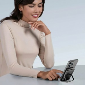 A beépített, innovatív, összecsukható kitámasztóval maximális kényelemben élvezheted kedvenc tartalmaidat. Nézz videókat, böngéssz vagy videótelefonálj anélkül, hogy tartanod kellene a telefonodat, akár álló, akár fekvő módban. Ez a funkció pillanatok alatt egy praktikus asztali állvánnyá varázsolja a powerbankot, tökéletes társ az irodában, otthon vagy utazás közben.