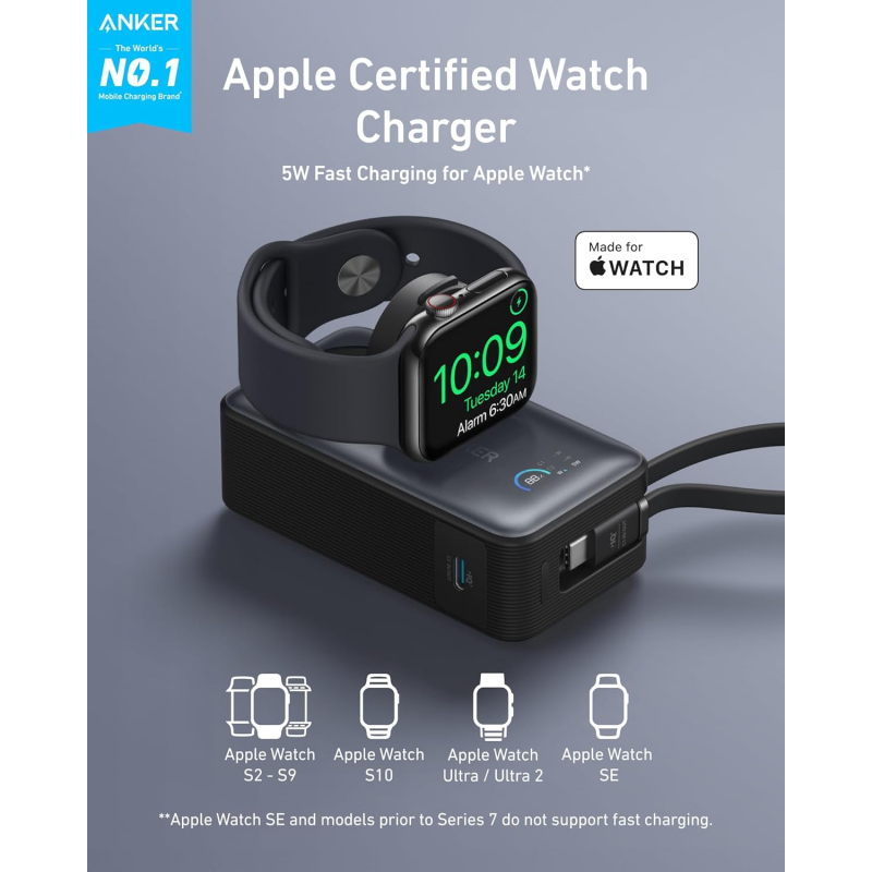 - „Made for Watch” tanúsítás: Az Anker MagGo hivatalos Apple Watch tanúsítvánnyal rendelkezik, garantálva az optimális, biztonságos és hatékony 5W-os vezeték nélküli töltést minden kompatibilis Apple Watch modell számára (Series 2-10, Ultra / Ultra 2, SE). Fontos megjegyzés: az Apple Watch SE és a Series 7 előtti modellek nem támogatják a gyorstöltést.