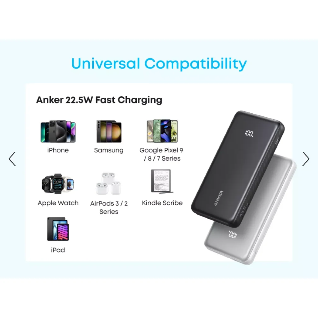 Az Anker Zolo power bankot úgy tervezték, hogy a legkülönfélébb eszközökkel kompatibilis legyen, így ideális választás szinte minden mobil eszköz felhasználó számára. A két kimeneti port (1x USB-A és 1x USB-C) sokoldalú csatlakozási lehetőséget biztosít.
