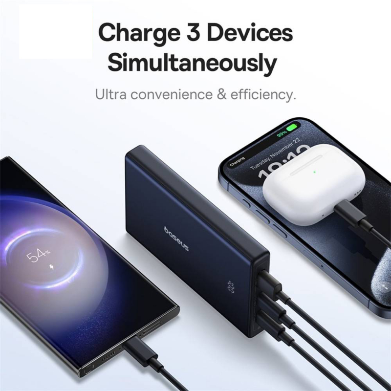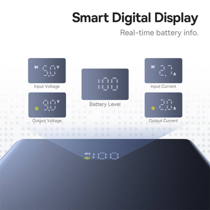 A Powerbank Baseus PicoGo - Fekete biztosítja, hogy az eszközeid mindig fel legyenek töltve, legyen szó utazásról, irodáról vagy szabadtéri tevékenységekről. 10000 mAh kapacitással akár 1,8-szor is feltölthet egy iPhone 16 Pro készüléket, így mindig rendelkezésedre áll az energia, amikor szükséged van rá. Élvezd a 20W-os gyors töltést, amely 0%-ról 55%-ra tölti fel az iPhone-odat csupán 30 perc alatt, biztonságos és gyors energiát nyújtva eszközeidnek. A beépített digitális kijelző valós időben mutatja a fennmaradó akkumulátorszintet az optimális ellenőrzés érdekében. Emellett a 3 töltőport (1x USB-C + 2x USB-A) lehetővé teszi, hogy több eszközt tölts egyszerre. A csomag tartalmaz egy 60W USB-C to USB-C kábelt (30 cm), amely tökéletes a gyors töltéshez és a megbízható energiaátvitelhez.