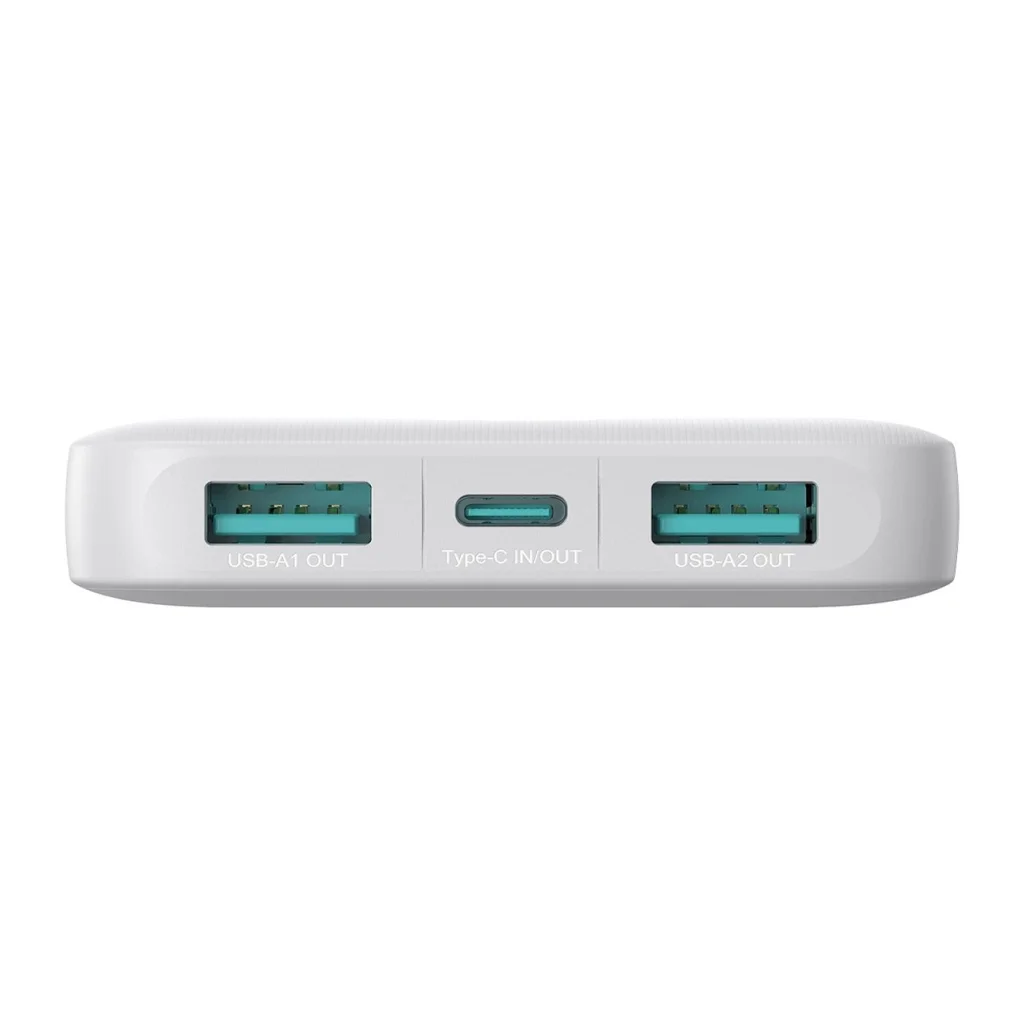 Joyroom JR-PBF12 powerbank 10,000 mAh kapacitással, 2 USB-A és 1 USB-C porttal - fehér A Joyroom JR-PBF12 powerbank segítségével sosem fogysz ki az energiából, bárhol is legyél. Ez a kompakt és hatékony powerbank 10,000 mAh kapacitással képes feltölteni iPhone 15 Pro-t, Samsung Galaxy S23 Ultra-t, iPad mini-t vagy AirPods Pro fejhallgatókat. Három portjának köszönhetően egyszerre három eszközt tölthetsz fel, ami felbecsülhetetlen előny utazás vagy intenzív munkanap során. Megbízhatóság és kényelem egyben, tökéletes minden alkalomra!