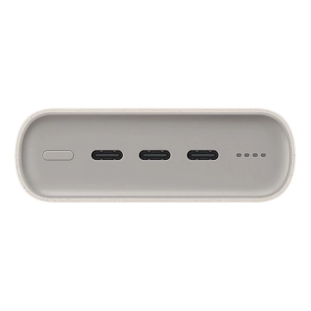 Samsung EB-P4520XUEGEU powerbank 20,000 mAh kapacitással, 3 USB-C porttal, 45W SFC - beige Bárhová magával viheti a Samsung EB-P4520XUEGEU Powerbankot - megbízható energiaforrás. 20,000 mAh kapacitásával többször is feltölti legtöbb mobil eszközét. Ráadásul a 45W-os szupergyors töltési funkciónak köszönhetően nem kell időt pazarolnia a várakozással - a kompatibilis eszközök gyorsan visszanyerik akkumulátoruk 100%-át. Három USB-C port lehetővé teszi, hogy egyszerre három eszközt töltsön fel, ami tökéletes családi vagy baráti utazások során. A készlet tartalmaz egy USB-C/USB-C kábelt is, így azonnal használhatja a powerbankot.