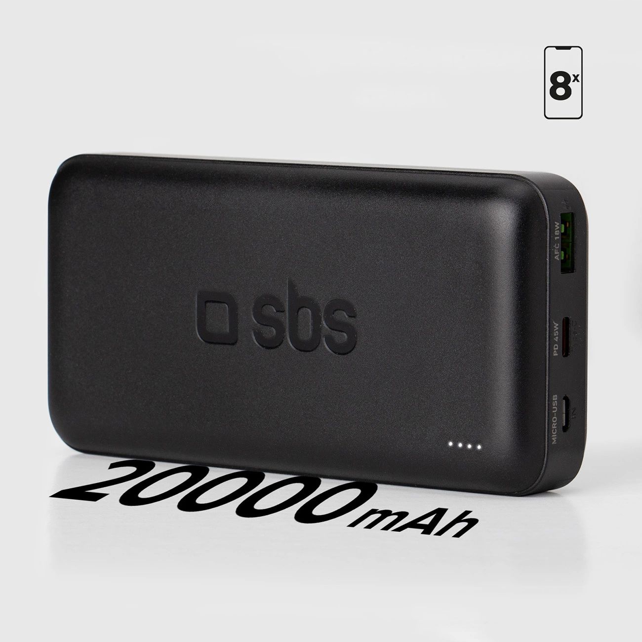 Powerbank SBS TTBB20000PD20K 20000mAh 20W PD USB-C, USB-A, Micro-USB – fekete Az SBS TTBB20000PD20K Powerbank megbízható megoldás azok számára, akik tartós és hatékony energiaforrást keresnek minden helyzetben. A 20,000 mAh nagy kapacitásának és a két kimeneti portnak köszönhetően egyszerre két eszközt is tölthet – ideális megoldás aktív felhasználók számára. Az USB-C port támogatja a 20W Power Delivery technológiát, amely ultra gyors töltést nyújt, míg az USB-A port az Adaptive Fast Charge technológiával gyors és biztonságos töltést biztosít. A powerbank a Micro-USB vagy az USB-C csatlakozón keresztül tölthető, ami sokoldalúságot és kényelmet garantál. Az LED jelzőknek köszönhetően mindig tudja, mennyi energia maradt felhasználásra. Ideális útitárs, amely megfelel a légi szállítási követelményeknek is. Ne várjon, válassza az SBS TTBB20000PD20K-t, és biztos lehet benne, hogy eszközei mindig indulásra készen állnak! Műszaki adatok:
