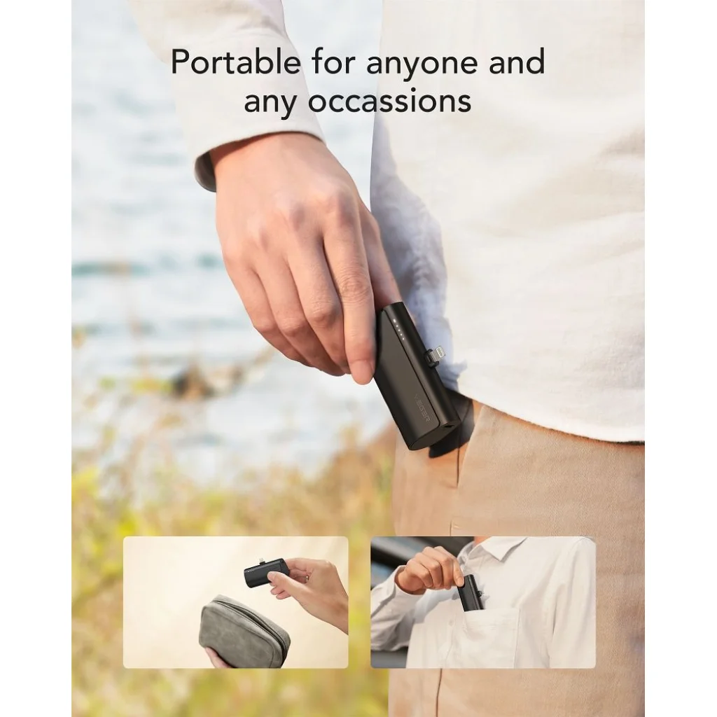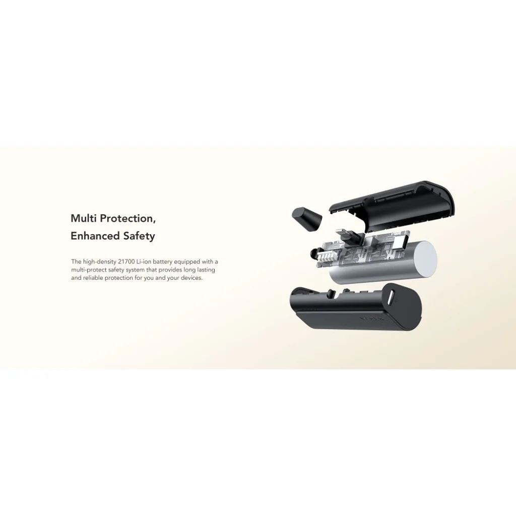 A Veger W0556P mindössze 78.2 x 38.5 x 24.5mm méretével és rendkívül könnyű, 110g súlyával valóban zsebben hordozható, akár egy apró táskába vagy nadrágzsebbe is belefér. Ez a kivételes kompaktság, amely méreteiben egy 18650-es akkumulátorhoz hasonló, lehetővé teszi, hogy bárhová magaddal vidd anélkül, hogy plusz súlyt vagy terjedelmet jelente. Az innovatív, beépített Lightning csatlakozónak köszönhetően nincs szükség külön kábelre az iPhone-ok töltéséhez, ami maximalizálja a kényelmet útközben, például egy selfie botra rögzítve videózás közben. A diszkrét LED jelzőfények mindig pontosan mutatják az aktuális töltöttségi szintet.