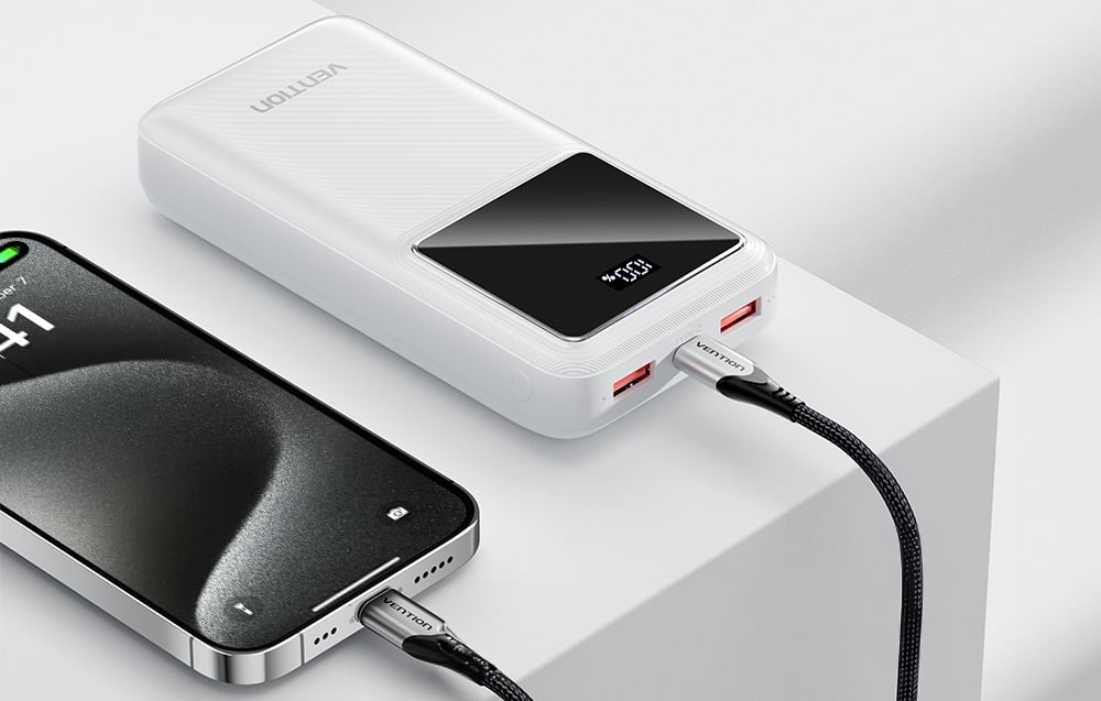 Don't worry about having to charge the powerbank after each use. The 20,000 mAh capacity, for example, allows you to charge the iPhone 15 Pro about 4 times, and the Samsung Galaxy S22 Ultra about 3 times. With Vention you will say goodbye to limitations! What's more, the powerbank itself charges via a micro USB or USB-C port with up to 18 watts of power. This means you don't have to wait too long until it's ready to work again! Information about the current percentage charge of the product will provide you with the built-in display.