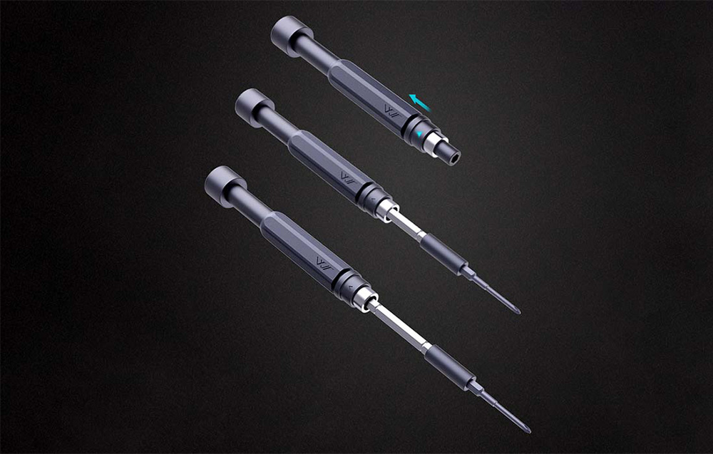 A készletben akár 72 bitfejet, egy állítható nyelet és annak két kisebb változatát, kétféle csipeszt, valamint egy funkcionális tokot talál mágnesesítő/demágnesítő funkcióval és csavartartályával. Az eszköz széles körű karbantartási, barkácsolási és javítási munkákhoz használható. A fő, állítható nyél két választható hosszal rendelkezik, amely a bitfejek rendkívül vékony kialakításával kiegészítve lehetővé teszi a nehezen hozzáférhető helyeken való munkát - például szűk vagy mély nyílásokban.
