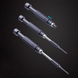 Minden alkatrész gyártásához tartós, kiváló minőségű anyagokat használtak annak érdekében, hogy biztosítsák a felhasználó kényelmét és biztonságát. A bitfejek (kivéve reverse cross, H2.5, H2.3, H2.0) speciális S2 acélötvözetből készültek, amely hosszú élettartamot garantál. A nyelek alumínium ötvözetből, a csipeszek pedig rozsdamentes acélból készültek. Tegyen a minőség mellett, amely lehetővé teszi a kényelmes munkavégzést!