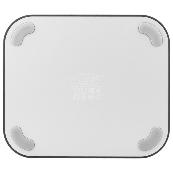 Műszaki adatok: Márka: Proove. Típus: 3 az 1-ben Éjjeli lámpa + Ébresztőóra Nappali és Éjszakai LED 1200mAh 3W induktív töltéssel. Teljesítmény: 3 W. Akkumulátor: 1200 mAh. Működési idő: Lámpa akár 20 óra, Ébresztőóra akár 96 óra. Töltő csatlakozó: USB-C (5 V / 3 A, 9 V / 2 A, 12 V / 1.5 A). Vezeték nélküli töltés: 2.5 W / 5 W / 7.5 W / 10 W / 15 W. Anyag: ABS, PP, szilikon. Fény színe: Meleg fehér (2900 - 3100 K), Hideg fehér (10000-13000 K). Funkciók: Fényerőszabályozás, Érintésvezérlés, Vezeték nélküli töltő, Éjszakai fény, Ébresztő, óra. Szín: Szürke. Tartalmazza: Proove Nappali és Éjszakai, USB-A/USB-C kábel.
