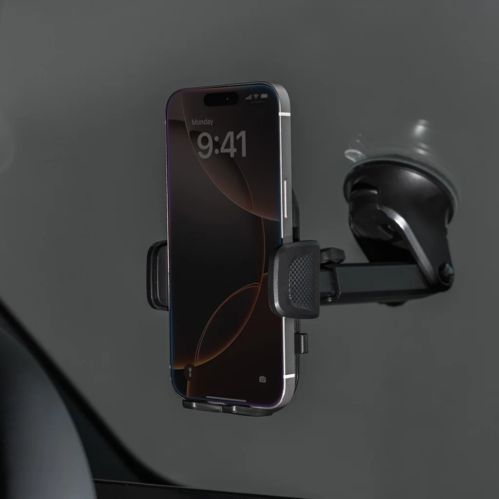 - Erős tapadókorongos rögzítés szélvédőre és műszerfalra