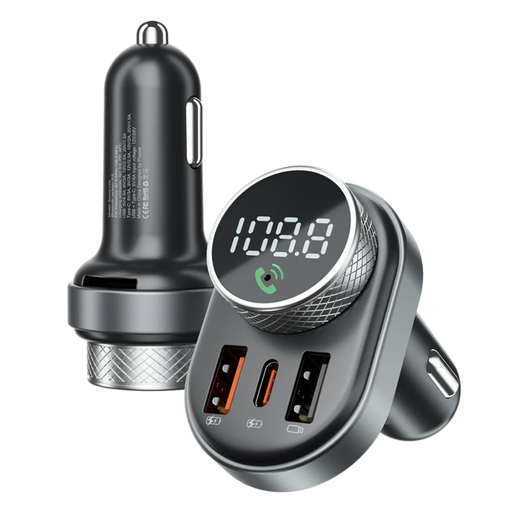 A beépített FM modulátor segítségével könnyedén átviheted a hangot telefonodról az autód FM rádiójára. Válassz egy szabad FM frekvenciát a digitális kijelzőn, állítsd be azt a készüléken és a rádiódon, és máris élvezheted a kristálytiszta hangzást a megszokott hangszórókon keresztül.