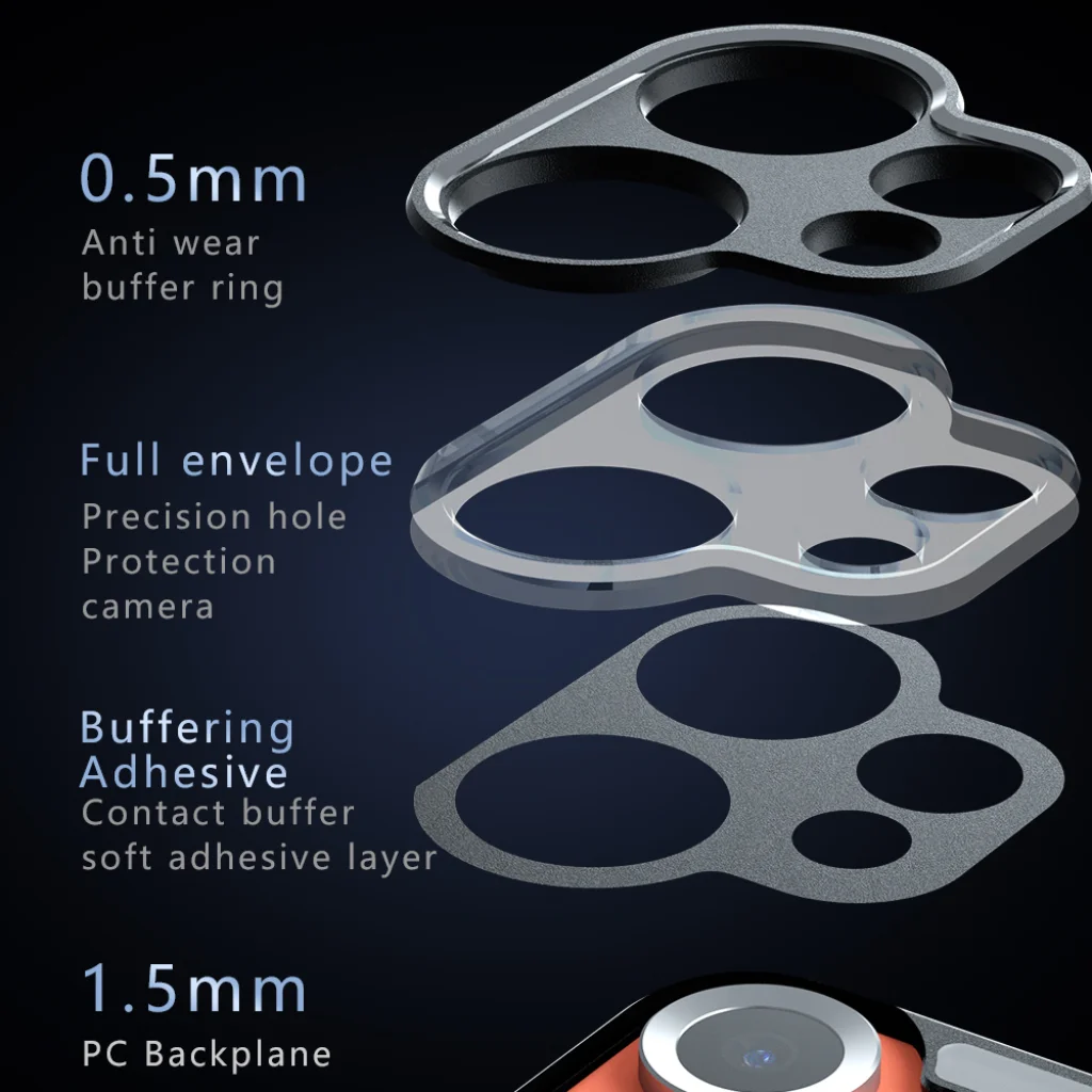 - Precíz kamera védelem: A kamerák kiemelt védelmet kapnak egy 0.5 mm-es kopásálló puffergyűrűvel, egy teljes körű, precíziós kivágású burkolattal és egy puha, párnázott ragasztóréteggel. A 1.5 mm vastag PC hátlap tovább erősíti a kamera körüli területet.