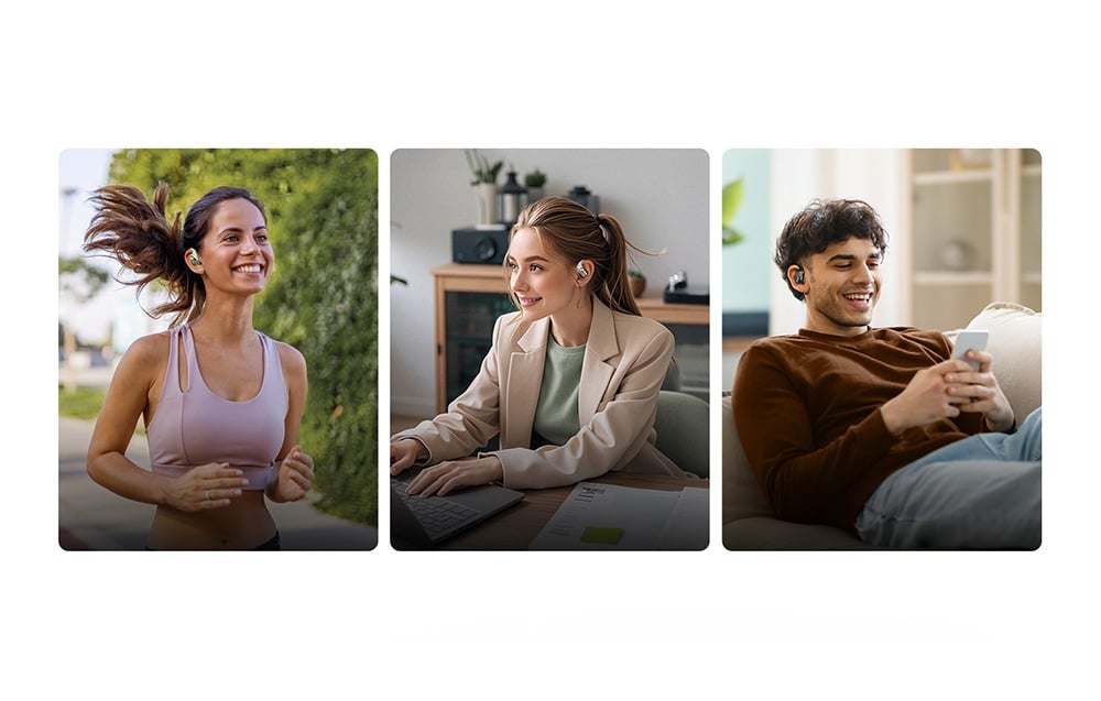 A két mikrofonból álló készlet és a fejlett zajszűrő algoritmus hatékonyan rögzíti a hangját, miközben kiküszöböli a szél és a környezeti zajokat - még akkor is, ha kint dolgozik! Emellett a relaxációs hangok beépített listája (pl. hullámzaj, tábortűz, eső, madárcsicsergés) lehetővé teszi, hogy gyorsan fókuszálási vagy néma üzemmódra váltson, ami segíti a relaxációt és az alvást.