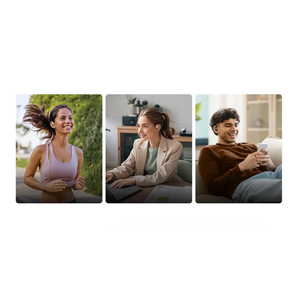 A maximális kényelem érdekében tervezett QCY Crossky R70 fülhallgató Snag Fit technológiát és 36°-os szöget használ, hogy tökéletesen illeszkedjen minden felhasználó fülének formájához. Az alakemlékező ötvözet (Ni-Ti) és a puha szilikon használatának köszönhetően a fülhallgató kényelmesen körbeöleli a fülkagylót anélkül, hogy nyomást okozna, miközben kiküszöböli a kiesés veszélyét. A nyitott kialakítás nem szigeteli el teljesen a környezetétől, így biztonságosabbá teszi futás, kerékpározás vagy irodai munka közben.