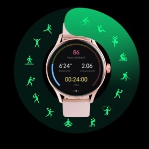 Az 1,19 hüvelykes, 390 x 390 képpontos felbontású AMOLED-kijelző éles képeket és tiszta színeket biztosít. Az Always-On Display funkcióval a képernyő felébresztése nélkül is gyorsan láthatja az időt és az értesítéseket. A négy fényerőszint lehetővé teszi a kép fényviszonyoknak megfelelő beállítását, a 2,5D üveg pedig megvédi a képernyőt a karcolásoktól, miközben fokozza a készülék vizuális megjelenését.