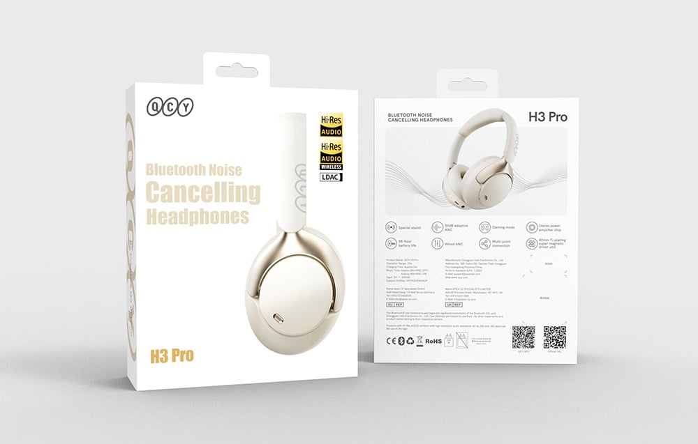 A QCY H3 Pro fejhallgató Hi-Res Audio és Hi-Res Audio Wireless tanúsítvánnyal rendelkezik, az LDAC kodek támogatásának köszönhetően. A nagy teljesítményű 40 mm-es titánmembrános meghajtók tiszta, térhatású hangzást biztosítanak kivételes mélységgel és részletgazdagsággal. A fejlett 360°-os surround hangzás algoritmus lehetővé teszi, hogy elmerüljön a háromdimenziós hangzásban, amely ideális zenehallgatáshoz és filmnézéshez egyaránt.