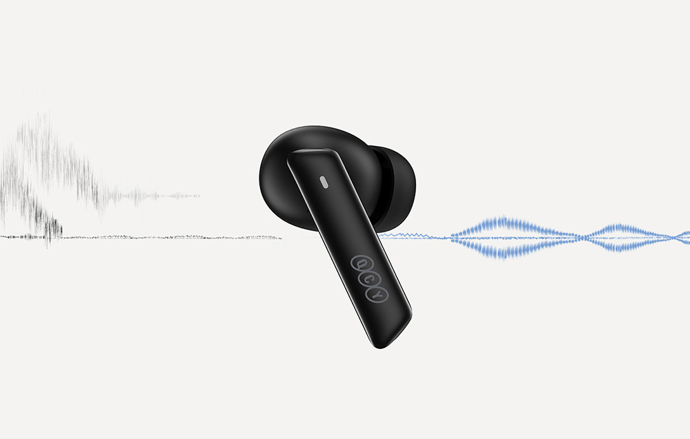 The QCY HT05 are equipped with 6 microphones and ENC technology, making them perfect for phone calls. The noise-canceling microphones accurately capture the human voice, while ENC effectively filters out background noise. Also noteworthy is the Wind noise cancellation mode, which makes it easier to talk even in strong gusts of wind.