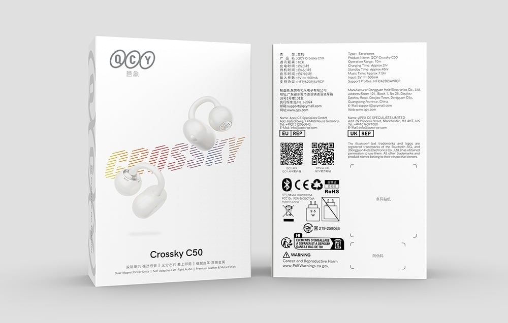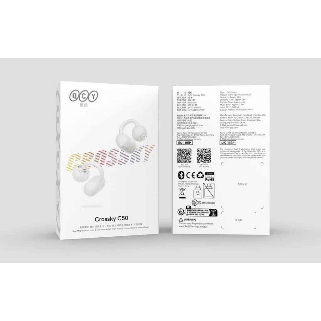 A QCY Crossky C50 egy olyan fülhallgató, amely a viselési kényelmet, a magas hangminőséget és a megbízható technológiát könnyű, ergonomikus kialakításban egyesíti. Nyitott kialakításának köszönhetően úgy hallgathat zenét, hogy közben a környezetére is figyelni tud. A kettős mágneses meghajtók erőteljesebb basszust garantálnak, a teljes lejátszási idő pedig a töltőtokkal együtt eléri a 35 órát. A Bluetooth 6.0 verziójú technológia gyors, stabil, alacsony késleltetésű kapcsolatot biztosít, az érintésvezérléssel pedig kényelmesen kezelheti a zenét és a hívásokat. Az IPX5 vízálló minősítésnek köszönhetően esőben, edzés közben vagy munkába menet is hallgathat zenét anélkül, hogy aggódnia kellene a készülék károsodása miatt.